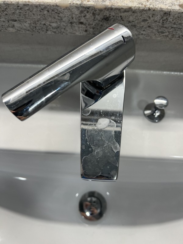 물만 닿았다하면 금방 뿌옇게 마르는 세면대와 세면대수전,