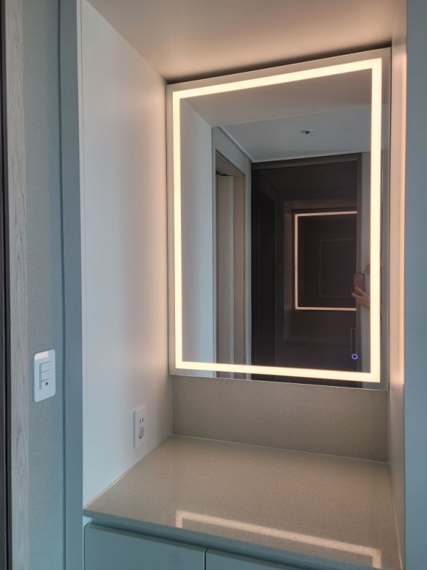 파우더룸 거울도 금방 먼지가 쌓이고 청소가 불편한데