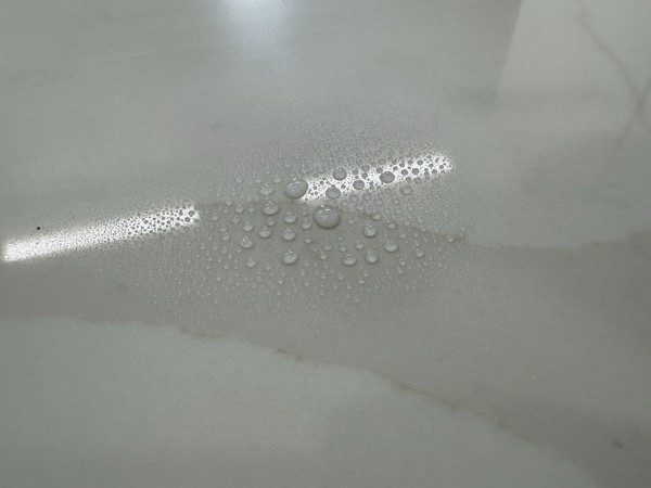 시공 전은 물이 퍼져저 흡수되지만 시공 후에는 물방울이 흡수되지 않고 동글동글 맺히는게 보이시죠??