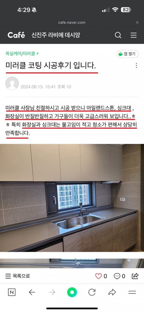 고객후기 | 미러클 나노코팅 실제고객후기(신진주라비에데시앙)