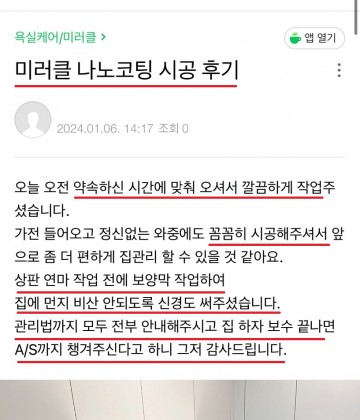 미러클 나노코팅 실제고객후기(세종산울마을5단지)