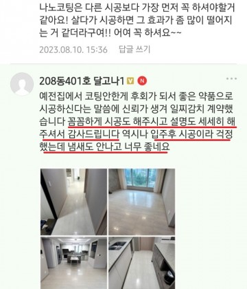 미러클 나노코팅 실제고객후기(오송대광1차)
