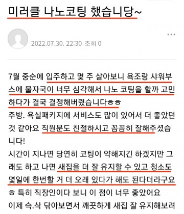 미러클 나노코팅 실제고객후기(명륜힐스테이트2차)