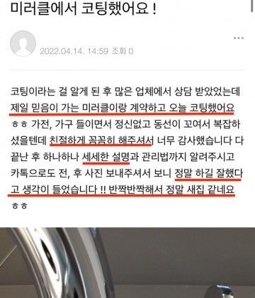 미러클 나노코팅 실제고객후기(대연마루양아내안애)