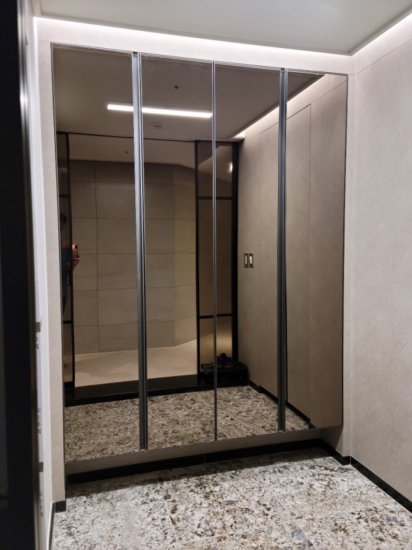 거울의 경우 역시 표면의 유막을 제거하여 거울을 깨끗한 상태로 복원시킨 뒤 나노코팅을 진행합니다. 그래서 지문이나 얼룩이 묻어도 수건으로 가볍게 닦아만 주시면 쉽게 제거가 가능합니다! 파우더룸 거울도 깨끗하게 시공하였습니다~